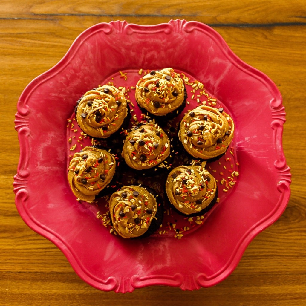 Cupcakes al cioccolato fondente e frosting al burro di arachidi, senza… burro, latte e uova