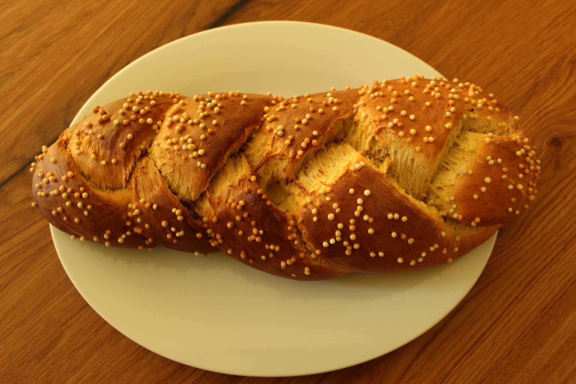 La treccia pasqualina è un lievitato che assomiglia ad un pane leggermente dolce, assolutamente non stucchevole e delicatissimo.