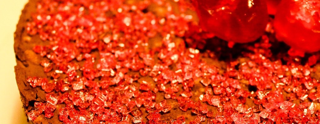 - Guarnite e servite: trascorso il tempo di raffreddamento guarnite con lo zucchero colorato e le ciliegie candite e servite.